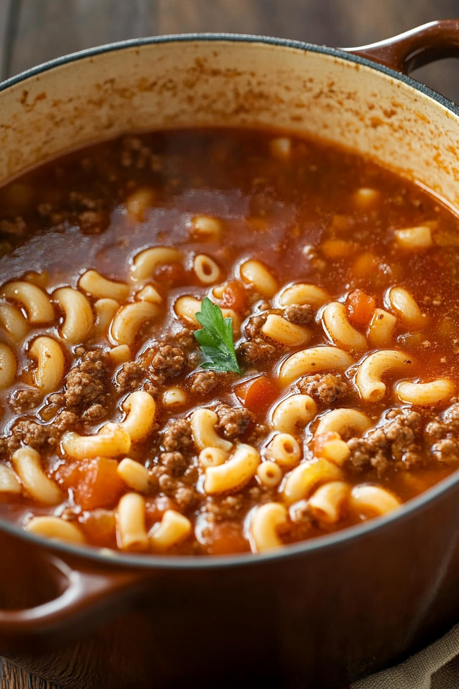 This recipe has been my go-to on those busy weekdays when I crave something easy yet deeply satisfying. What I love most about this soup is its versatility. It’s a dish that welcomes all—whether you’re curling up with a good book, feeding a family after a long day, or hosting friends for a casual dinner. The tender ground beef, simmered with onions and garlic, mingles with the rich tomato broth. The macaroni soaks up all those flavors, becoming plump and perfect in every bite. A sprinkle of fresh parsley or a dusting of Parmesan on top takes it to the next level.
