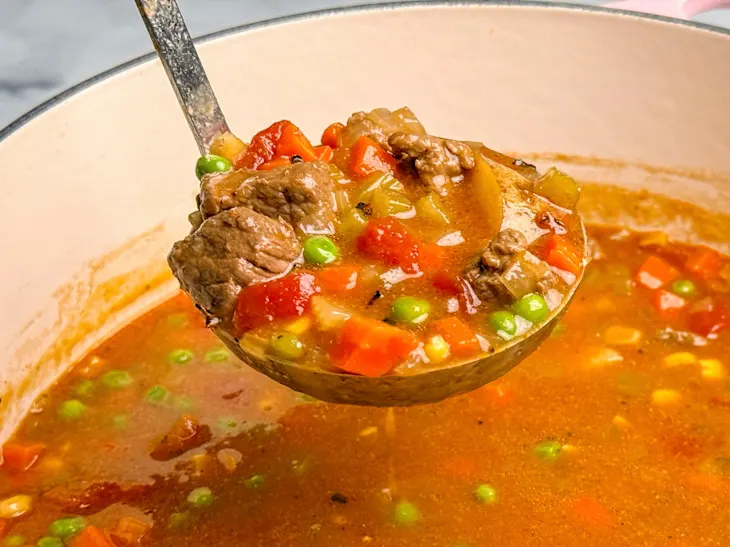 - Simmer longer for better texture. If you want tender, fall-apart beef and a richer broth, extend the cook time and consider only partially covering the pot. You may also want to dice the vegetables larger so they don’t fall apart with the longer cook time.