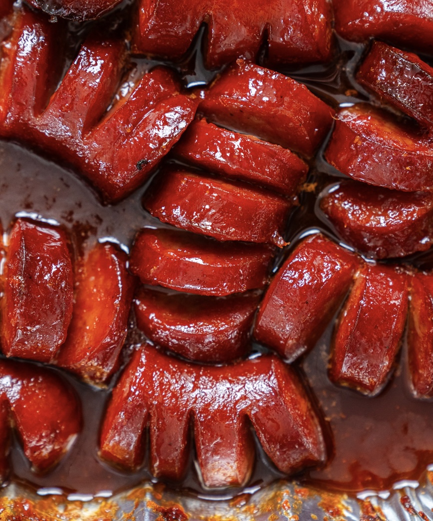 - Pour the glaze over the kielbasa and toss well to coat.