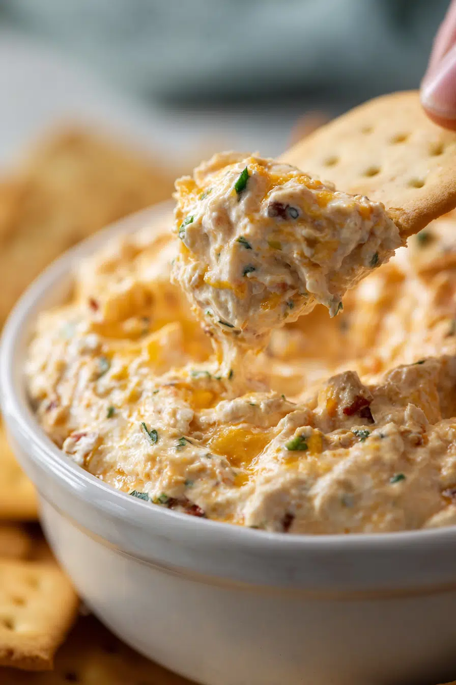 This dip shines during Thanksgiving, Christmas, and New Year’s gatherings. It pairs beautifully with crackers and toasted baguette slices.