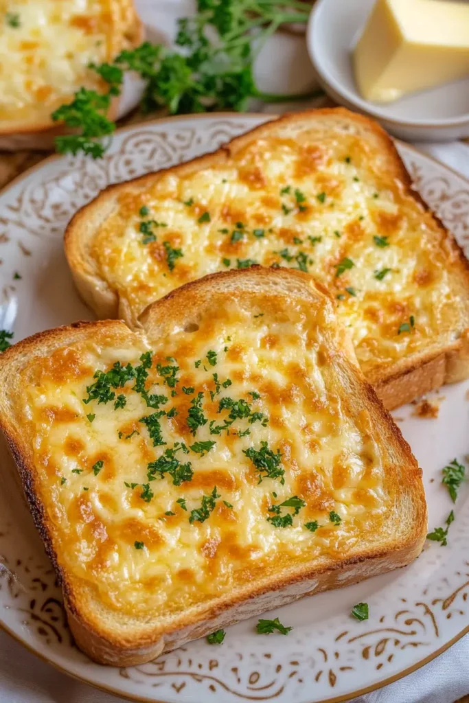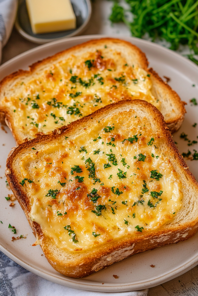 It’s no wonder that this easy side dish is so popular. Not only is it budget-friendly and quick to whip up, but its bold flavors complement almost any main course. Plus, the option to make it extra cheesy and customize the seasoning ensures your toast stands out from the crowd. If you really want to impress, toss on some fresh herbs or top it with chopped crispy bacon.