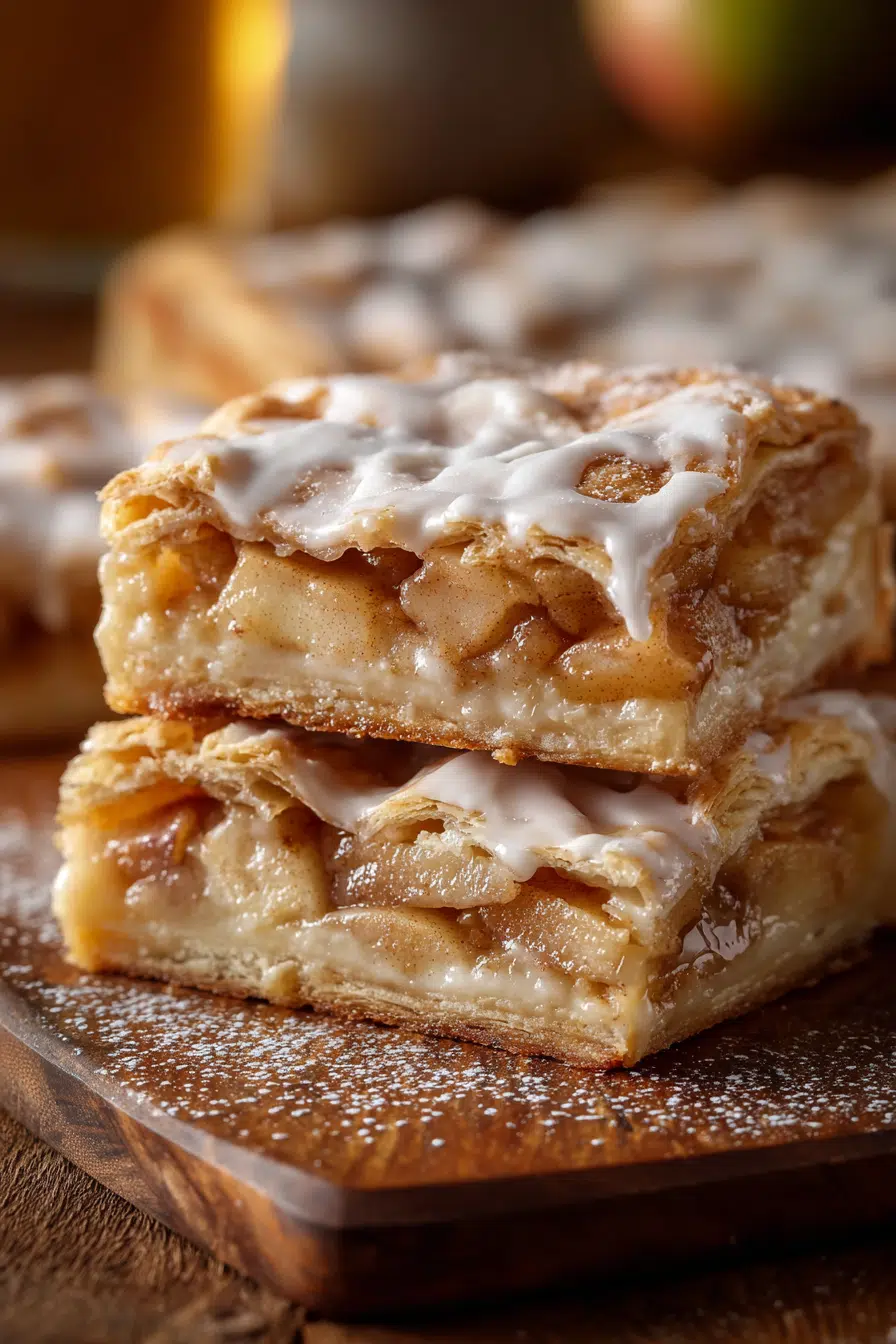 These Chicago-Style Bakery Apple Slices were thick, generously filled, and baked in big rectangular pans. The crust was tender but sturdy, the filling was jammy and fragrant, and the sweet glaze on top cracked just enough when you bit into it. They weren’t fancy—but they were perfect. They were the kind of dessert that tasted like home, like weekends with family, like stopping at the bakery “just for bread” and leaving with a paper bag that smelled like cinnamon.