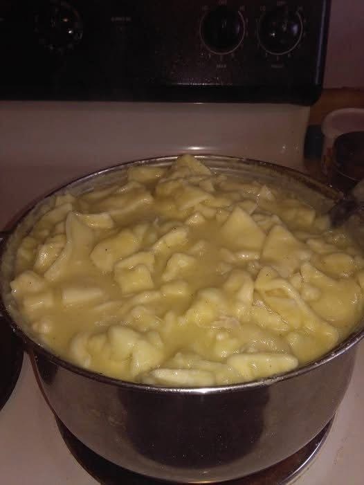 broth that’s far richer than anything from a carton. The dumplings are the traditional drop style—soft, fluffy, and gently steamed rather than baked—giving them that signature cloud-like texture. Keeping the lid on while they cook is essential to ensure the dumplings stay light instead of heavy