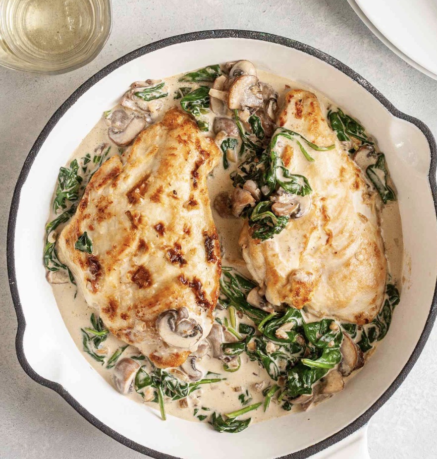 This creamy Chicken Florentine recipe has tender pan-fried chicken coated in an amazing garlic spinach white wine cream sauce! It’s ready in only 30 minutes.