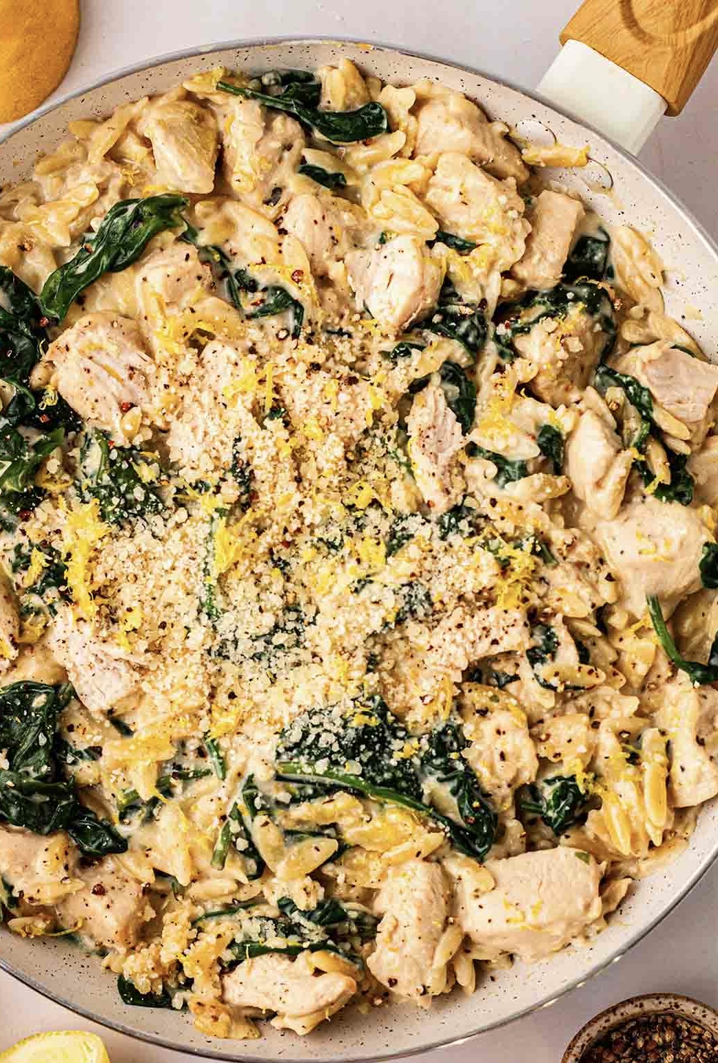 I wanted to create something for anyone not having a big Easter this year but still craving a cozy, comforting meal. I knew I wanted chicken, orzo, and a creamy lemon sauce inspired by avgolemono, and after a few tweaks, this casserole came out absolutely perfect for a smaller Easter or even an easy weeknight dinner.You can even assemble it the night before and bake it once it comes to room temperature, which makes it perfect when you don’t feel like doing a lot of cooking.