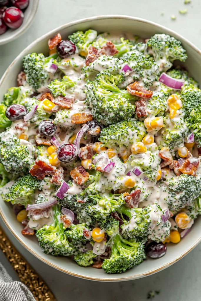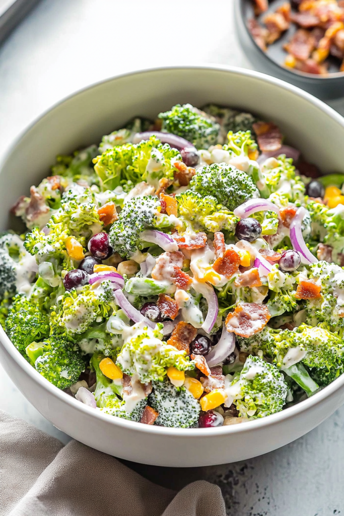 Since then, I’ve experimented with countless variations—sometimes swapping out the nuts, or adding crispy bacon for a savory twist. Whether you’re looking to keep things vegetarian or want to sprinkle in a little extra protein, this easy broccoli salad recipe proves that healthy eating can still feel indulgent and satisfying. From its colorful presentation to its diverse blend of flavors, this dish is destined to become one of your most-requested recipes.