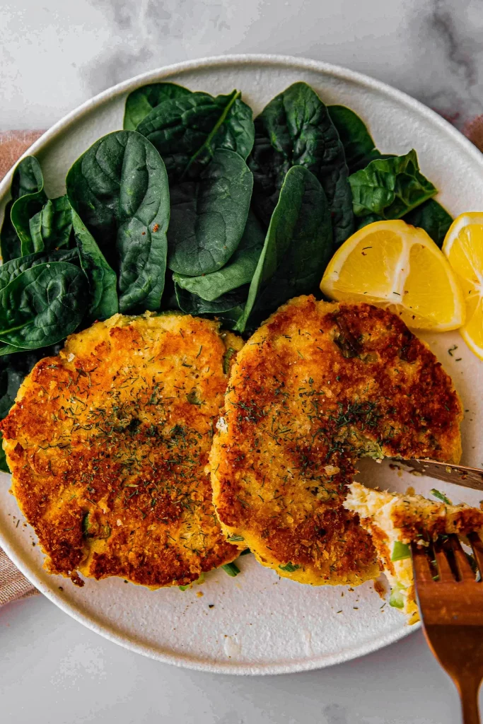 These easy canned salmon patties can be paired with a variety of foods to make a complete dinner. You can make roasted vegetables, a nice dinner salad, or grilled asparagus.