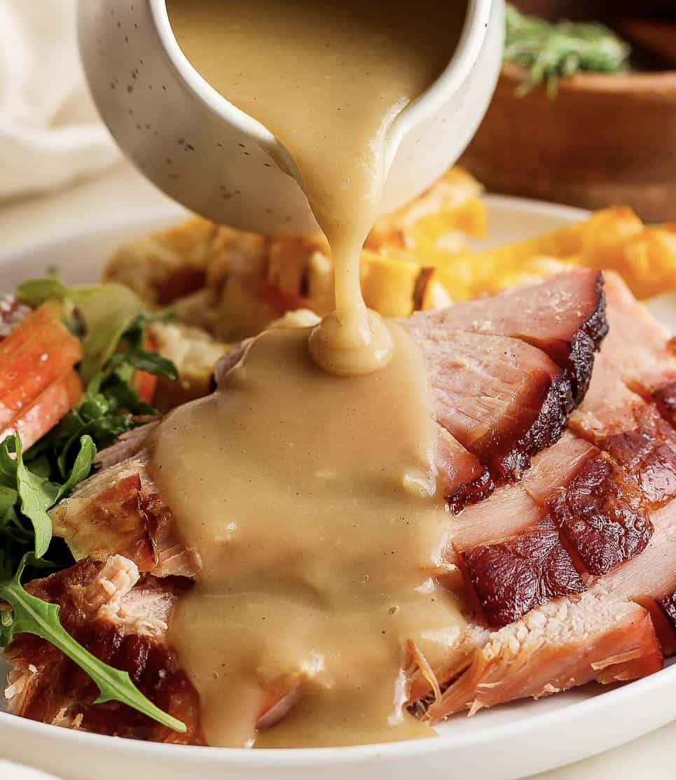 When you turn that into gravy, it creates a really balanced sweet and savory flavor. If you prefer your gravy a little sweeter to match your ham, add a pinch or two of brown sugar to taste.