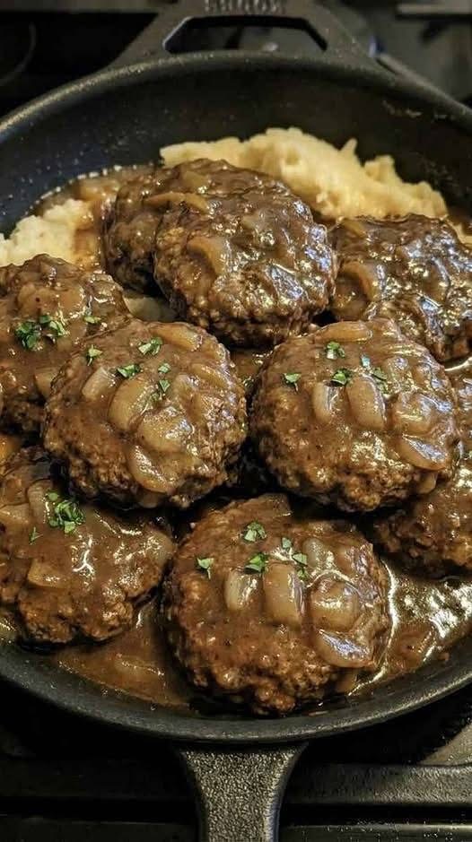 Some dinners feel like a warm embrace at the end of a long day, and Salisbury Steak with Mushroom Gravy is exactly that kind of comfort food. I still remember walking into my grandmother’s kitchen after school, the scent of seared beef and onions drifting through the house. It meant one thing—dinner was almost ready, and homework could wait.