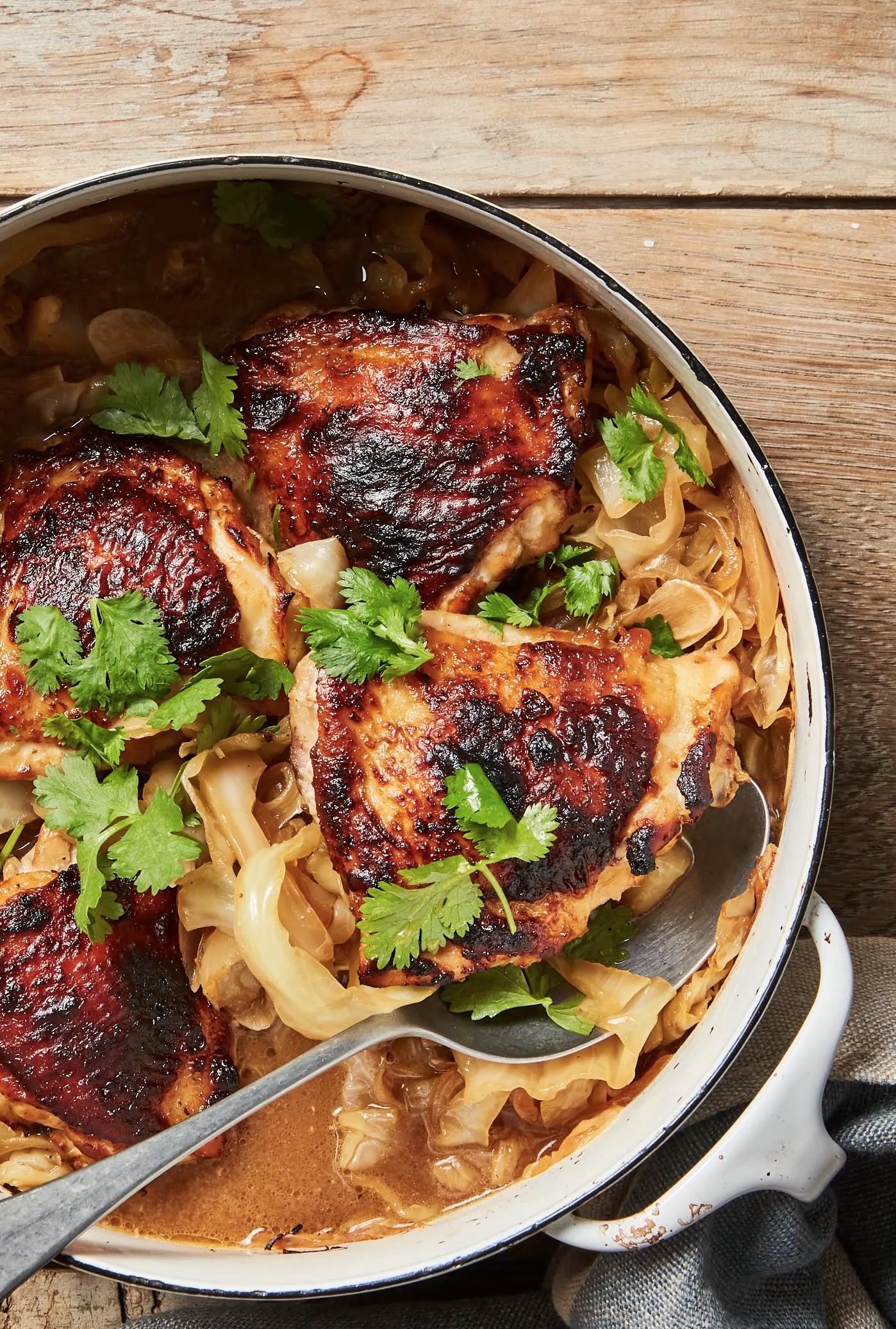 - Place chicken on top of the cabbage.