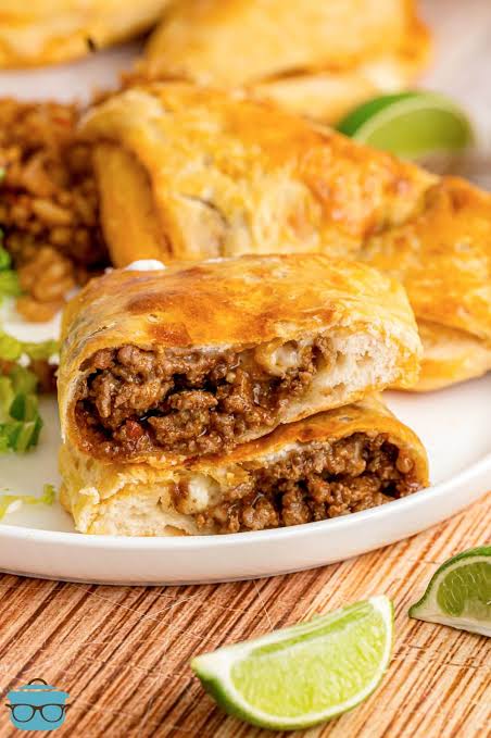 A snack can be as simple as cheese and crackers but sometimes you want something a little bit extra and these Cheesy Beef Taco Pockets perfectly fit the bill. They’re easy to make (seven ingredients!); full of creamy, beefy, cheesy goodness; and are hearty enough to qualify as a meal if you want a dinner that’s a little snacky. My whole family loves them and I’m sure yours will too.