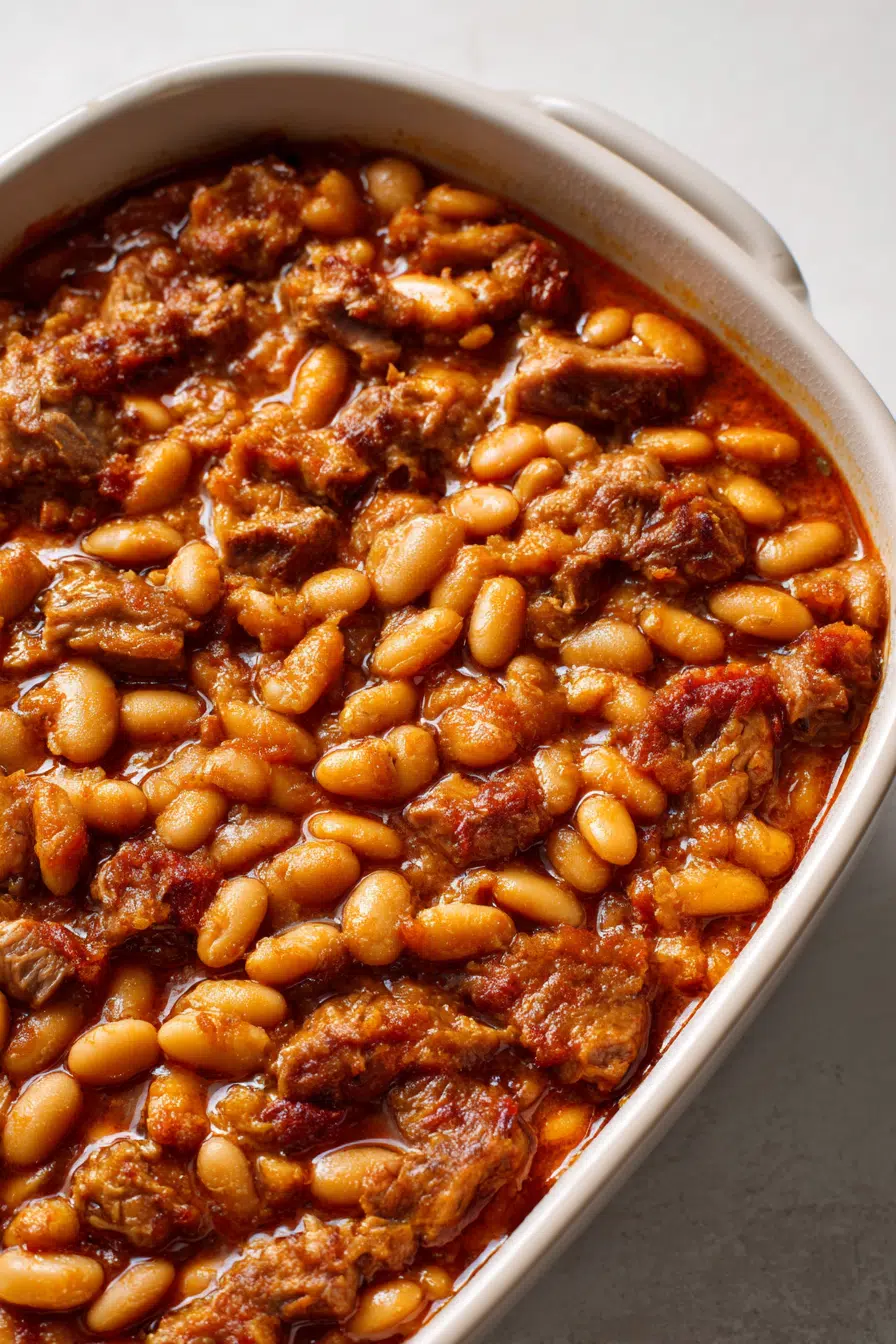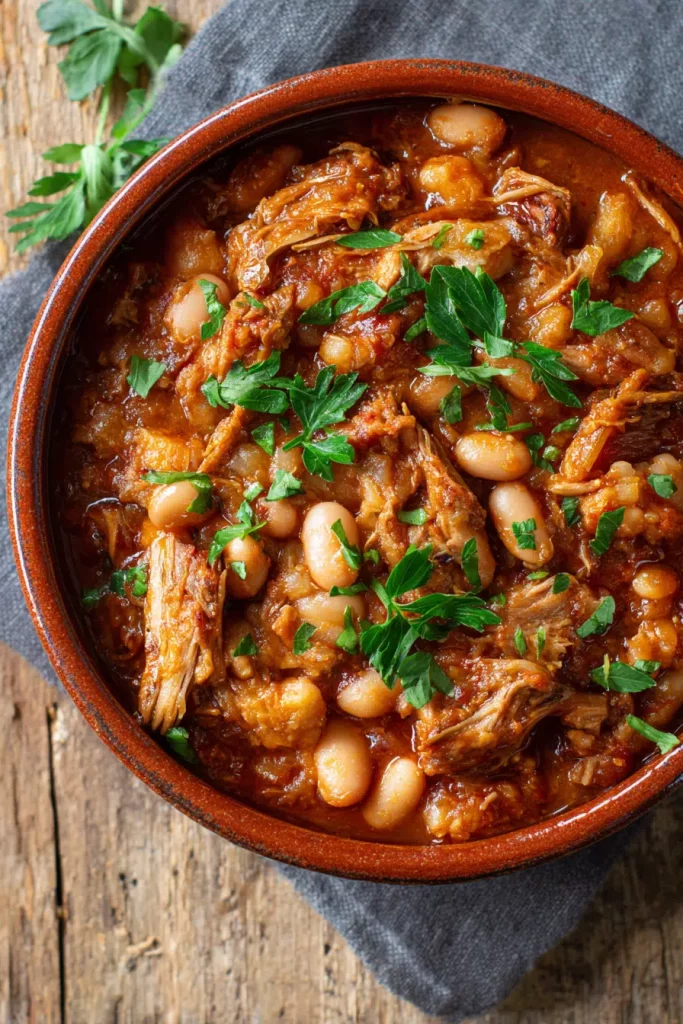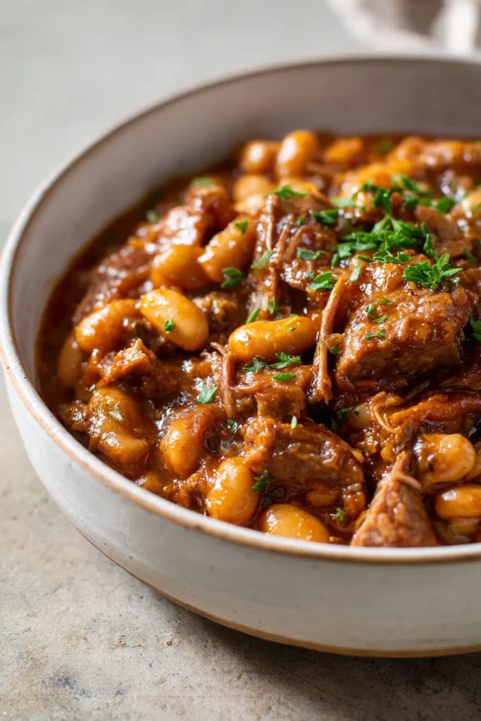 still remember the first time I made a version of this dish on a cold evening when I wanted something rustic, filling, and unfussy. I had a bag of dried beans sitting in my pantry and a cut of pork that needed to be used. What came out of that simple combination was magic: tender pork, creamy beans, and a rich, savory sauce that tasted like it had been cooking in a farmhouse kitchen all day.