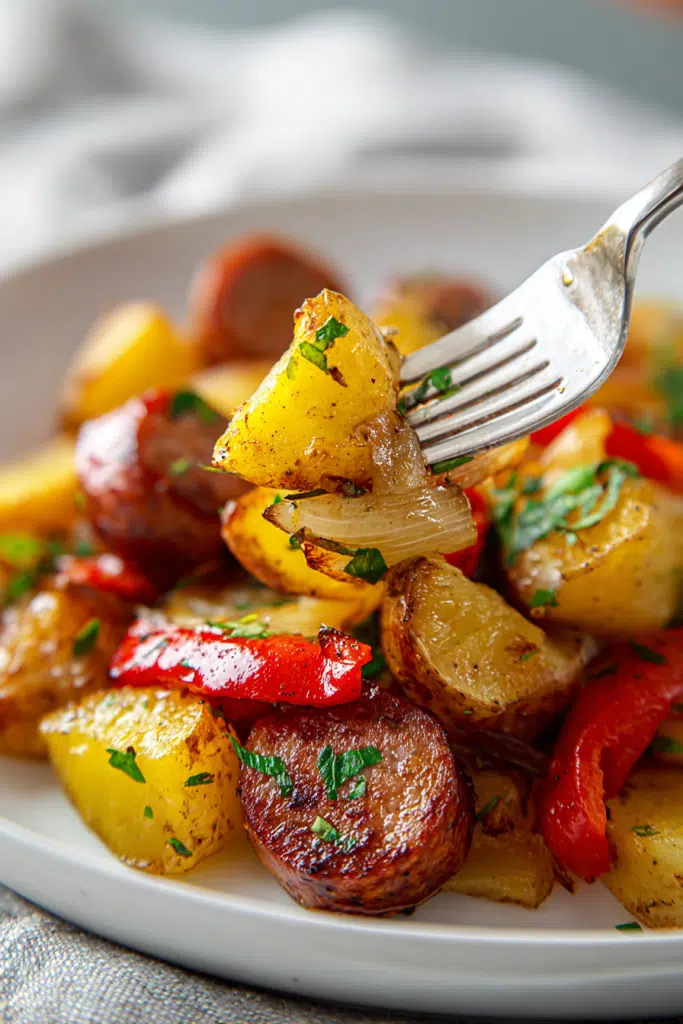’ve made this dish countless times for dinner, especially on busy weeknights or lazy Sundays when comfort is the priority. It’s also one of those recipes that somehow feels special enough for holidays, even though it couldn’t be easier. The colors alone—golden potatoes, vibrant peppers, and browned sausages—make it feel warm and inviting.