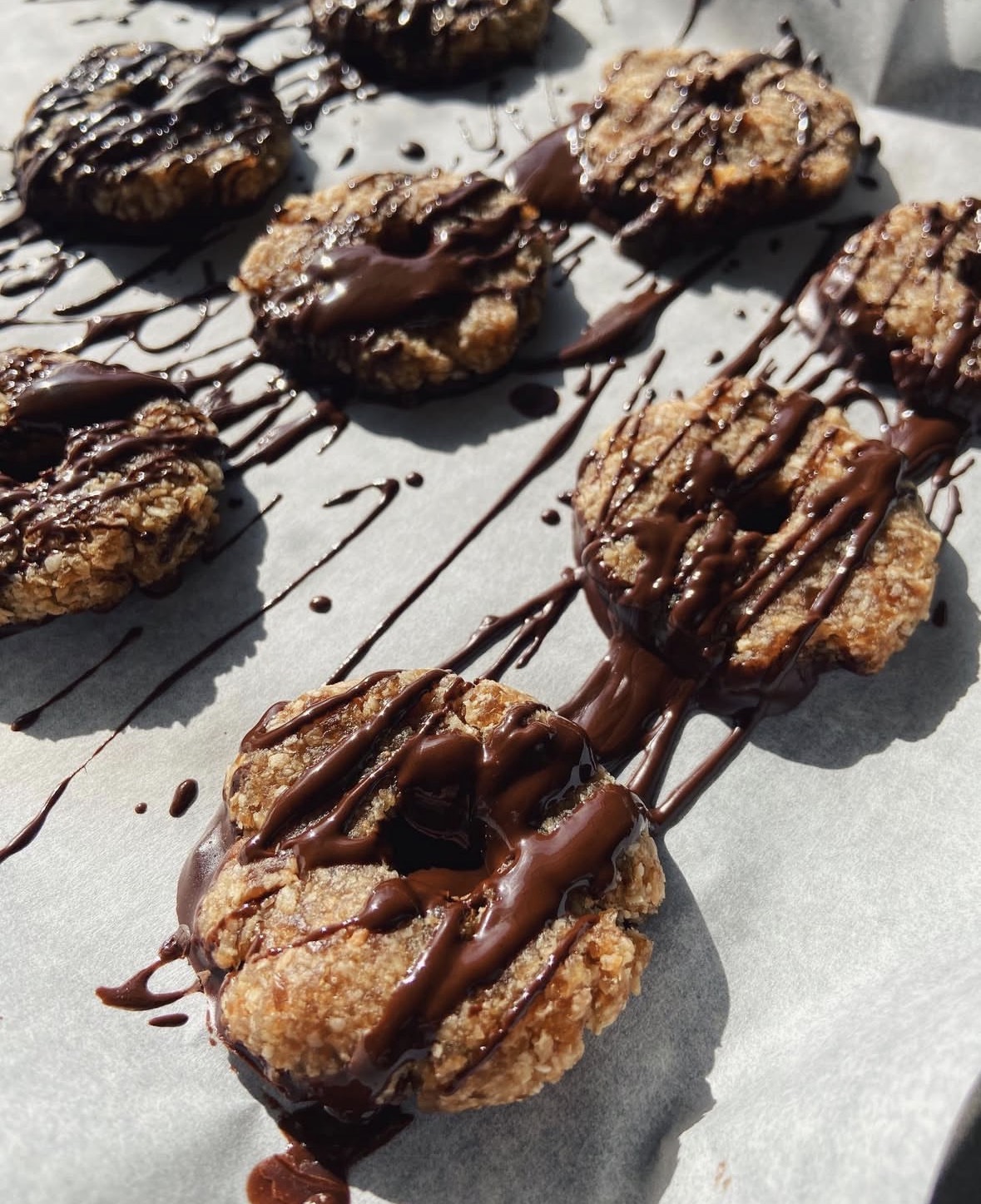 Drizzle over the cookies (a sandwich bag with the corner snipped makes this easy).