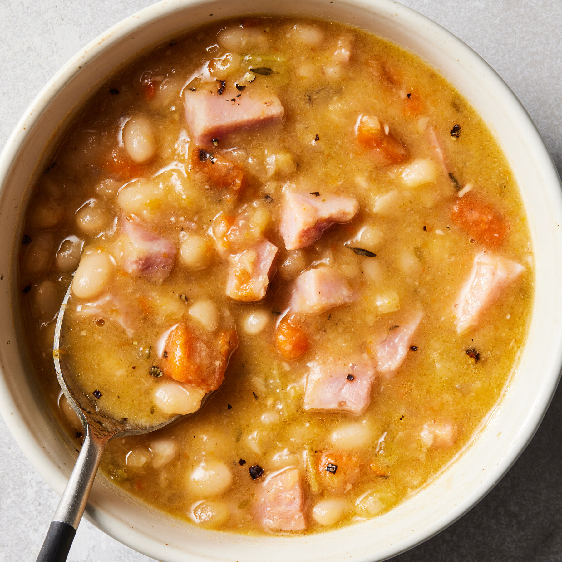 If using a ham bone, carefully remove it to a plate once the beans are done. Let it cool slightly, then pull off any remaining meat, chop it into bite-size pieces, and return the meat to the slow cooker. Discard the bone and any large pieces of fat.