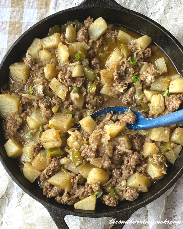 This satisfying one-skillet meal combines tender potatoes, seasoned ground beef, sautéed onions, and plenty of melted cheese. Crispy on the outside and comforting all the way through, it’s an easy, filling dish that works for breakfast, lunch, or dinner.