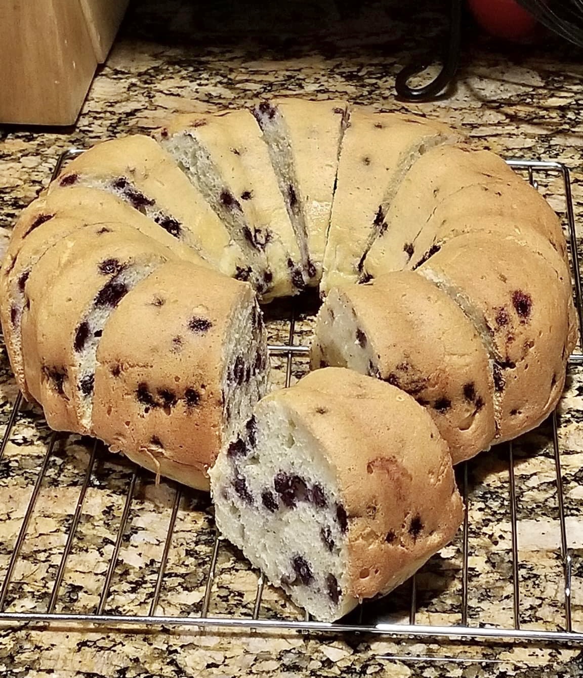 - Bake 325 for about 40 minutes. Top wasn’t very browned but you flip it over anyway from the Bundt pan.