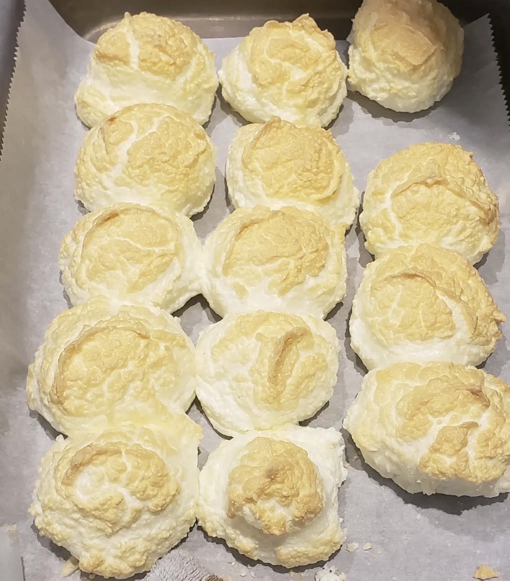 Whipped it to stiff peaks and blobbed it into circles on parchment lined cookie sheet and sprinkled with everything bagel seasoning. Baked at 400 for 8 mins.