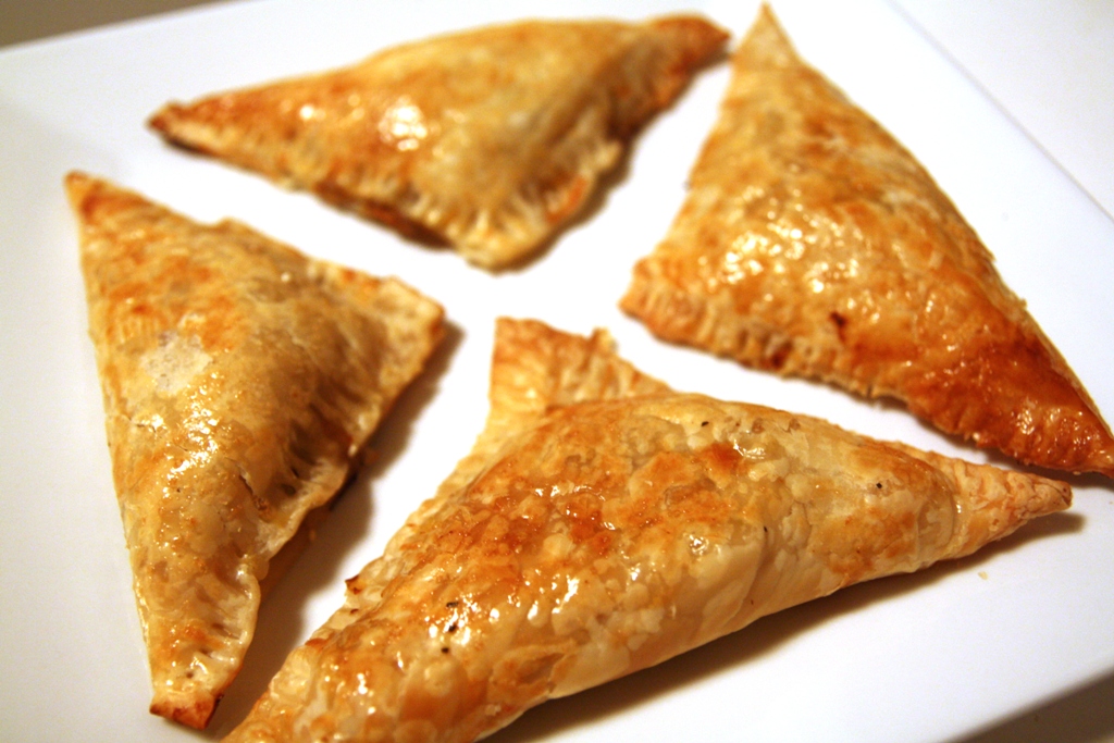 - Cut each pastry sheet into 4 squares. Divide mince mixture evenly between pastry squares. Fold pastry in a triangle to enclose filling. Use a fork, press edges together to seal. Place on prepared trays. Brush pasties with egg and sprinkle with sesame seeds.