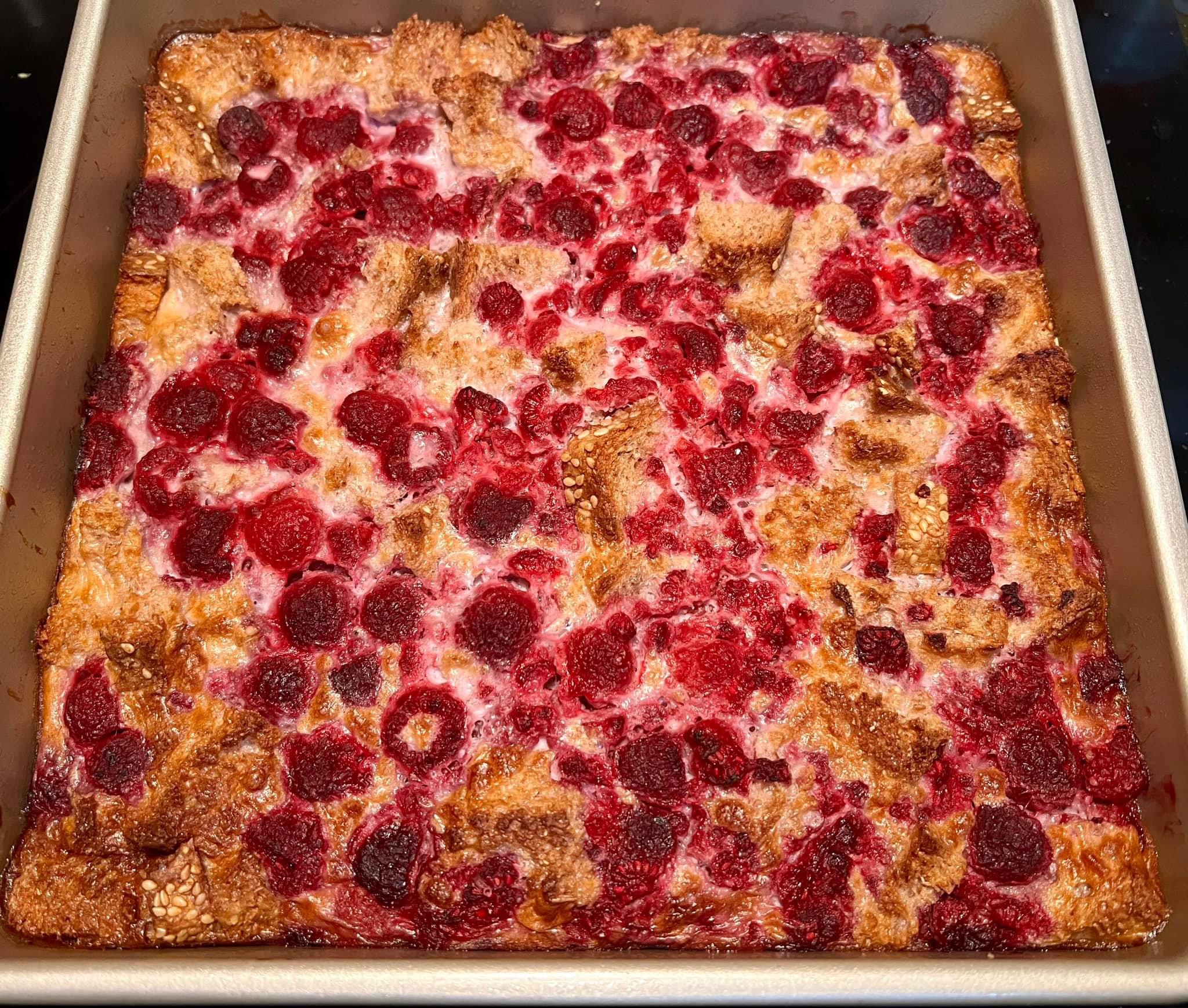 Made an absolutely delicious raspberry bread pudding with custard. It has only 3 Weight Watchers points for a large serving and offers so much flavor it’s ridiculous. Ingredients